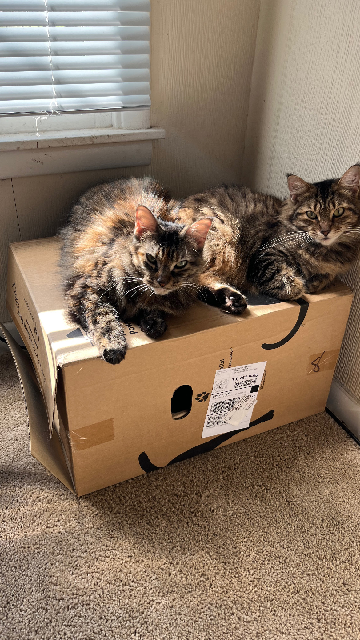 Princesses Bella and Luna. Above are my two rescues who I got when they were nine months old although I was told originally they were kittens. They were underfed, underweight and full of fleas plus emotional issues that made our first few months difficult to handle at first.